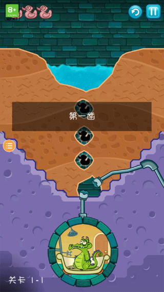 2、正式开始后,我们能看到上方的水源,以及下方等着洗澡的鳄鱼,需要把水源引到水管里。