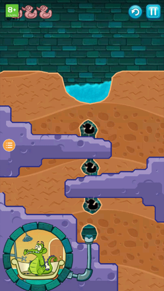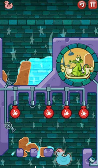4、只要想办法让水顺利流进浴缸,小鳄鱼就能舒舒服服地洗个澡,之后你就能拿到奖励啦。