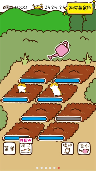 1、这是一款放置类猫咪饲养(栽培)游戏,你可以在商店购买种子,把种子种到田里后就会发芽。猫咪就算放养着也能自然生长,玩法就是这么简单!