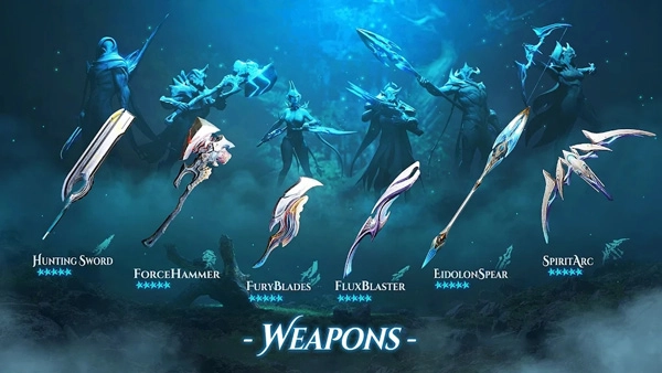 面对挑战时,你可以从斩猎刀、强击锤、血怒刃、塑能枪和饲灵枪里,挑选出最契合自身的武器。