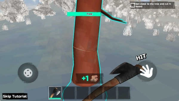 5、装上斧子后走到树旁边,就可以开始砍树了