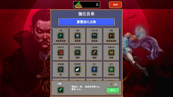 复古像素风裹挟着满满的怀旧气息,操作门槛极低,只需指尖灵活走位即可,武器会自动发起攻击,割草体验酣畅淋漓;肉鸽元素的加入,让每一次升级都充满未知惊喜,武器与道具的组合方式丰富多元,到了后期数值更是呈爆炸式增长,爽快感直接拉满,玩家能在不断挑战中最终击败死神。