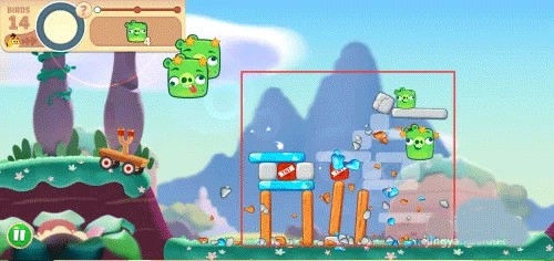 然后,我们在游戏时把左侧的小鸟向后拉动。