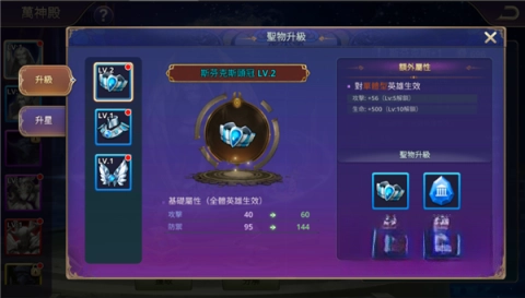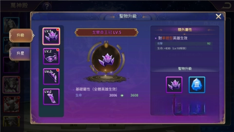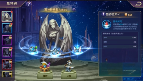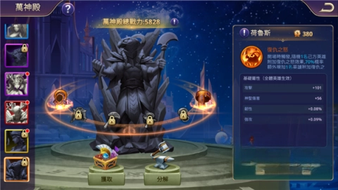 每一尊神像都具备独特的祝福与技能,提升圣物部件等级可增强基础属性,且该效果对全体英雄均适用。除此之外,各类圣物还能为英雄提供额外加成,而激活神像技能则需要通过收集并升级圣物来实现,这将为战斗带来显著优势。