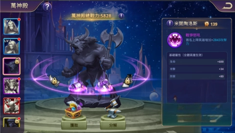 斯芬克斯的灵魂诘问,会对敌方施加10%的流血效果;北欧精灵的赐福能提升最大生命值上限;米诺陶洛斯的战吼可增强前排英雄的攻击力。