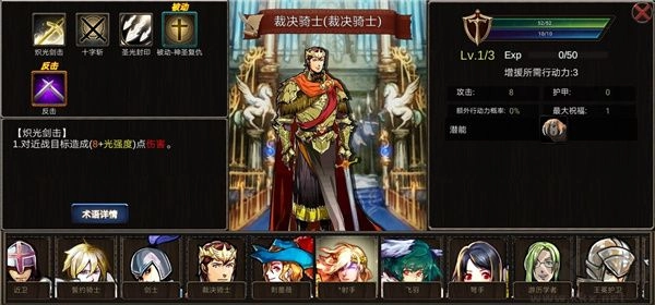 2、裁决骑士具备十字斩双砍的高额伤害,当队友死亡时会主动对敌方发起攻击,建议抓取五个该骑士。