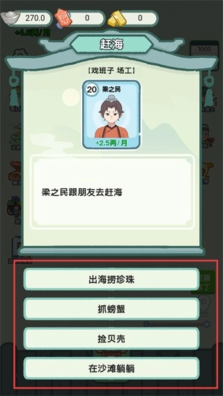 3、在【赶海】剧情中选择选项,不同的选项获取不同物资资源。