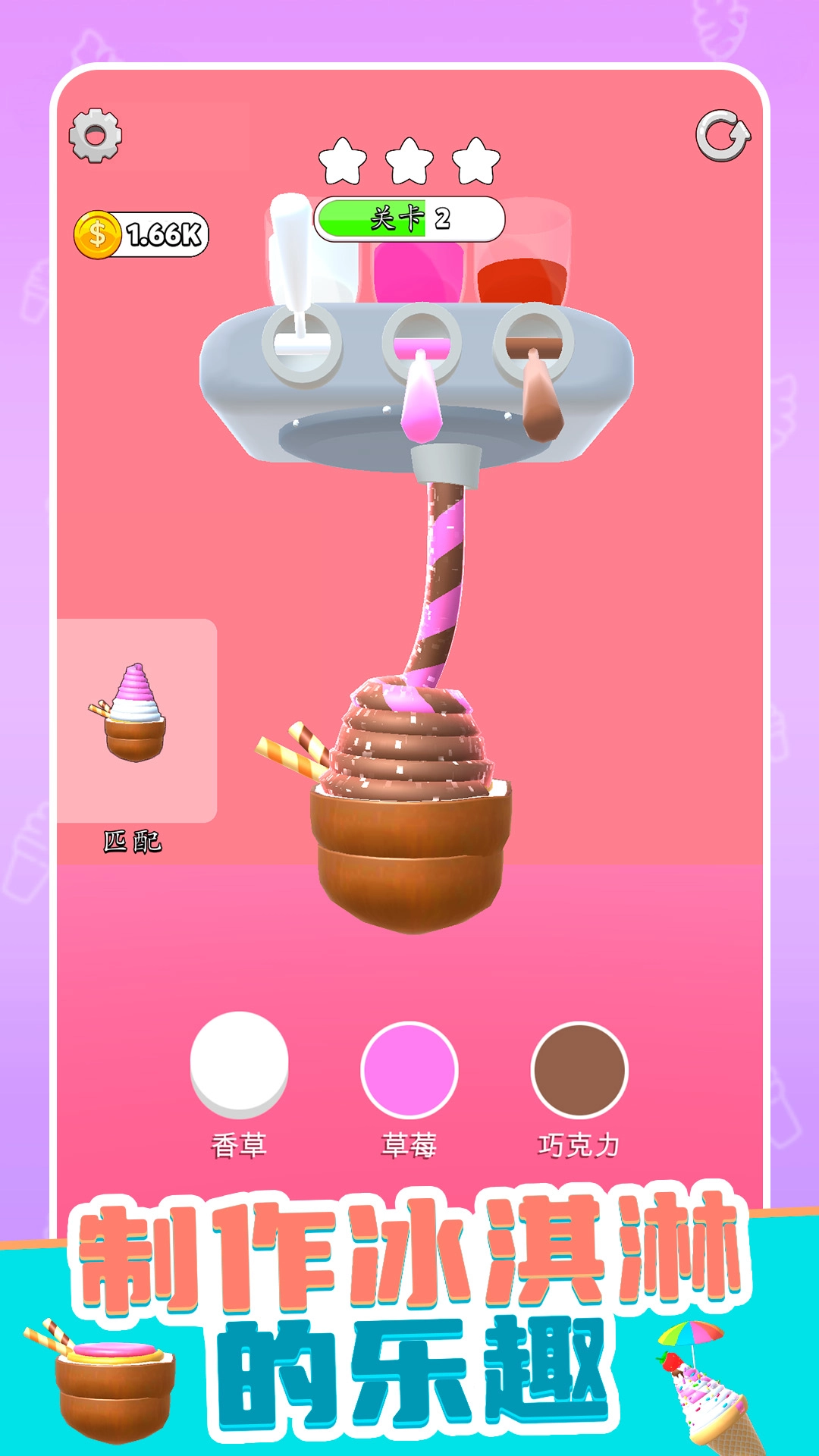 这是一款别出心裁的休闲经营类游戏,玩家将扮演一位技艺精湛的冰淇淋匠人,运用各种天然原料,为每位顾客打造专属口味的美味甜品。游戏画面清新明快,还融入了真实的色彩调配机制,让玩家在轻松惬意的环境里,尽情享受创造独特冰淇淋的欢乐过程。