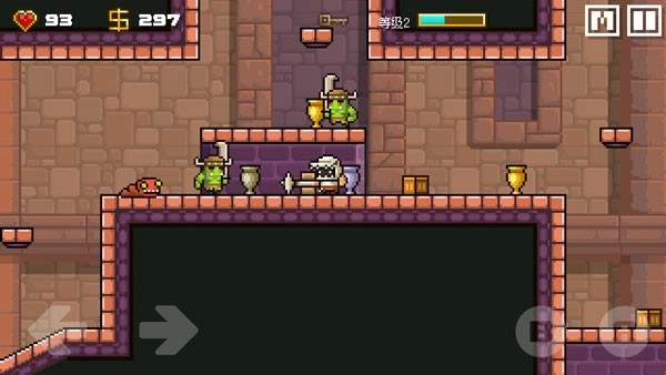 游戏的画面风格简洁明快,内里的玩法内容却相当充实有趣;操作体验也延续了这种“简单却不单调”的设计——玩家只需点击左下角的方向键,就能轻松操控角色移动;右下角的A/B键则分别对应攻击与跳跃动作,值得一提的是,长按跳跃键还能触发向下跳跃的特殊操作哦。