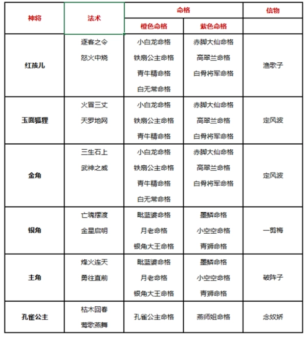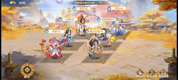 第二套角色配置:1. 太白金星 2. 日夜游神 3. 骊山元君 4. 天后娘娘 5. 玩家自身 6. 月下老人