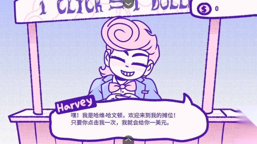 基本操作,玩家通过点击屏幕上的哈维宾顿来赚钱。