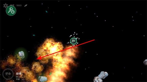 在太空环境下遭遇爆炸区域时,要留意避开危险区域,同时抓住爆炸产生的时机,吞噬散落的碎片。