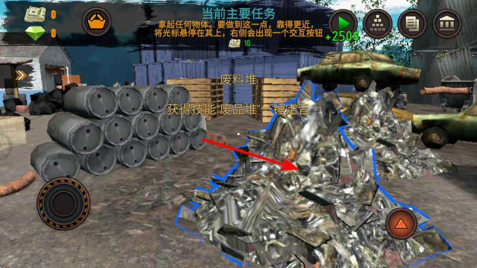 探索废料堆资源,在垃圾场中找到废料堆,获取废品堆技能,开启废料堆资源的收集渠道。