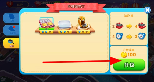 用金币升级厨具,能让厨具效率更高,加快美食制作速度,进而提升餐厅的服务效率和盈利能力。