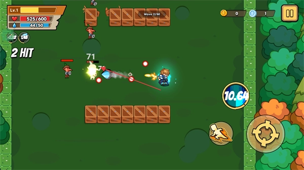 接近敌人后,点击右侧的攻击按钮进行射击,此时屏幕会出现HIT提示,并显示出击中造成的伤害数值。