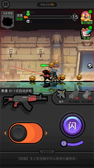 推进至第02关,瞄准敌人与金币,把控射击节奏,高效清除怪物并收集资源。