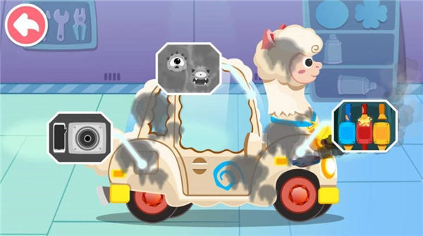 游戏里,宝宝摇身一变成修理师,核心任务是修复存在问题或隐患的小汽车:先移动扫描仪扫描车辆,找出爆胎、引擎故障等问题;接着打开引擎盖,连接对应颜色的电线,添加机油、玻璃水等,在操作中深入了解汽车内部构造;最后进行清洁工作——打开高压水管对准污渍,用强力水柱冲掉脏污,再移动花洒冲洗车身,擦亮车窗、清理空调灰尘,把车内车外都打理干净,让汽车焕然一新!
