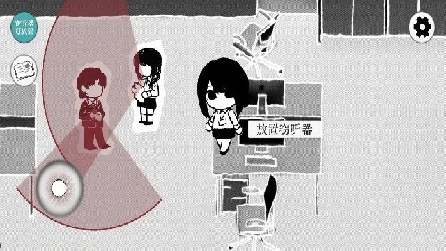 在办公区场景里,你能够操控角色进行移动,注意避开NPC视野所及的红色扇形区域,选好合适的位置后点击“放置窃听器”,以此来收集NPC之间私密对话的线索。