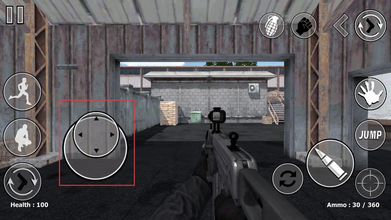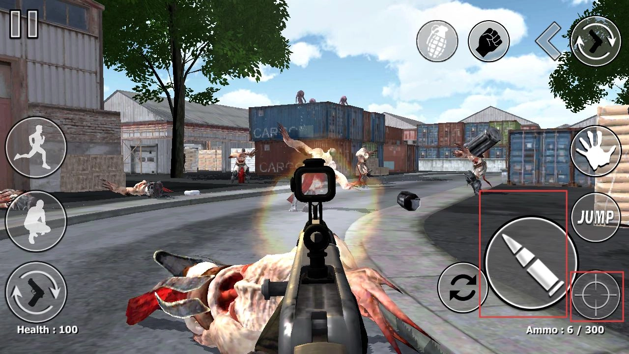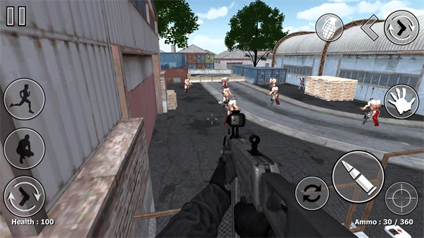 在场景里借助左侧的虚拟摇杆来操控角色移动,去探索各个不同的区域,搜寻僵尸并做好战斗的准备。