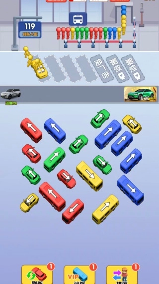 每辆车有特定朝向,玩家需按正确方向操作。