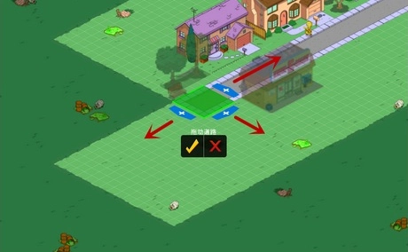点击道路标识后,即可开始道路布局,能向空闲区域拉伸,无需玩家逐块进行布局。