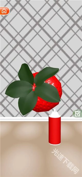 纯红→深粉红→再点一次纯红,就能合成100%的深红色草莓。