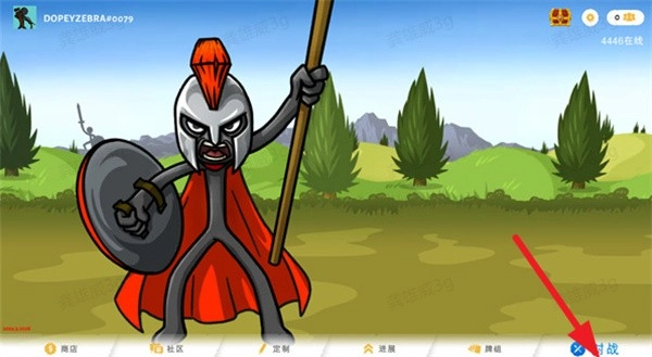 游戏一开局就是中文,不用特意去设置,在主界面右下角点一下“对战”就行。