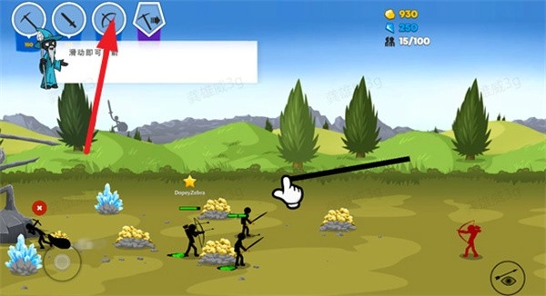6、再去点击左上角的图标,召唤出弓箭手作战,可以朝着目标滑动,就能直接射箭。