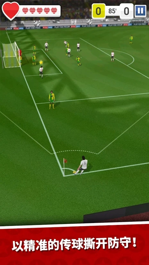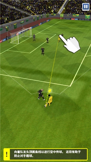 2、每一脚传球都需要玩家做好选择,这也直接影响了下一步的行动。玩家滑屏的力度即为角色的传球或是射门的力度,所以是否能传出一个好球或者是一个精妙的射门,就看你滑动的力度如何了,本作更多偏向于玩家对于球运动轨迹的操控,并无法达到利用角色控球的程度。