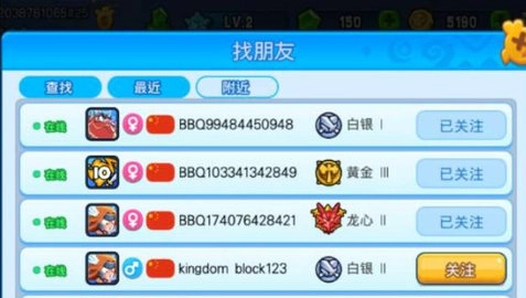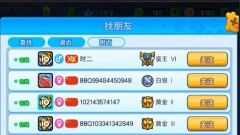 要是想随意找些人一起玩,可以在最近或附近的界面里添加。