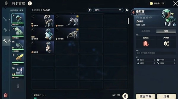 生产类玛卡能够帮我们完成伐木、控火、挖矿、制造、浇水、收集、播种等工作。我们可以在了你家园中枢的玛卡管理界面里,把它们编入生产编队,这样就能指挥有专长的玛卡去做对应的任务,让它们为我们效力。