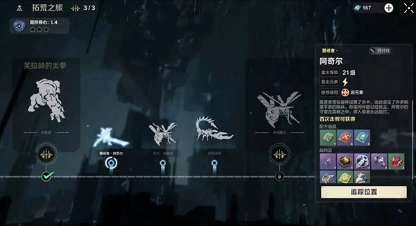 击败霸主后,除了能获得常规材料外,部分霸主还会掉落火、电、冰、风、岩等不同属性的战技。我们可以把对应的战技装配到自己喜爱的武器上,在面对不同敌人时,借助属性克制关系来打出更高的伤害。另外,随着核心等级的提升,还会解锁回路与古珀等功能,这些功能都能进一步增强拓荒者的战斗能力。