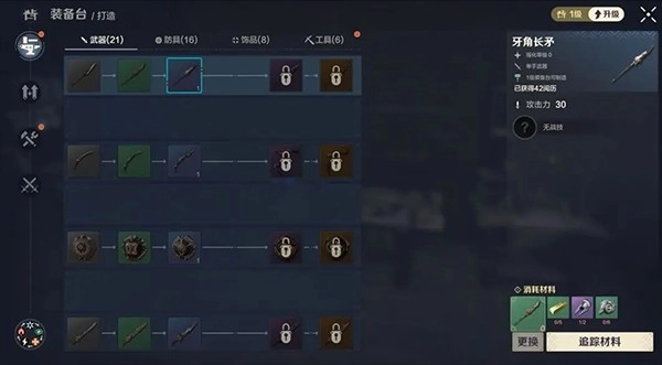 游戏内所有的武器与防具,都能够借助装备台进行制作生产。装备的品质按照从低到高的顺序,依次划分为:白