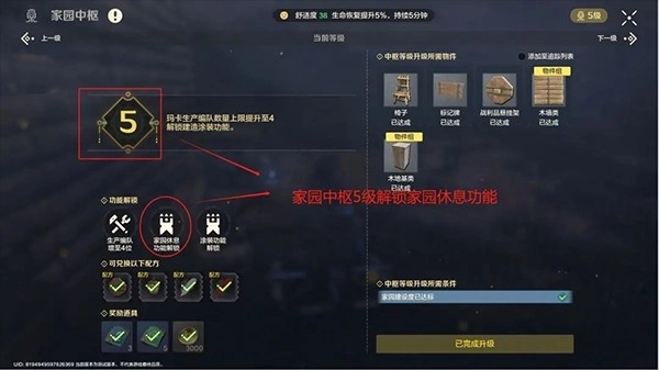 家园中枢除了具备建造功能外,还能进行升级、管理玛卡以及传送,堪称功能性最集中的区域。大家要记得及时提升家园等级,升级后不仅家园面积会扩大,还能解锁更多功能性家具,同时还能获取各类残页、亚金、配方等道具。而且随着家园中枢等级的提高,我们还能解锁种植、养殖等新玩法。