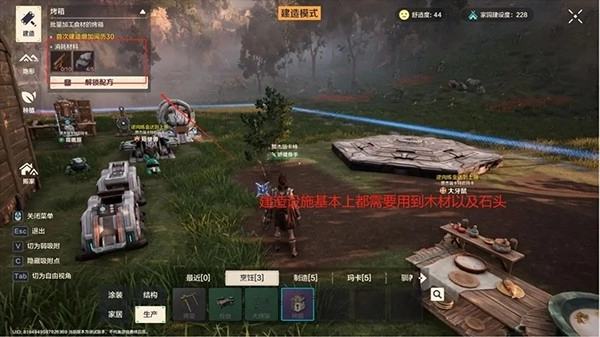 在《荒野起源》里,玩家能够在野外的任意地点放置家园中枢,只要是自己心仪的风景之处,都能随心建造。游戏的建造功能涵盖了涂装、结构、家居、生产这四大板块,而其中各式各样的装饰类、功能性以及观赏性家具,都可以借助配方来进行解锁。