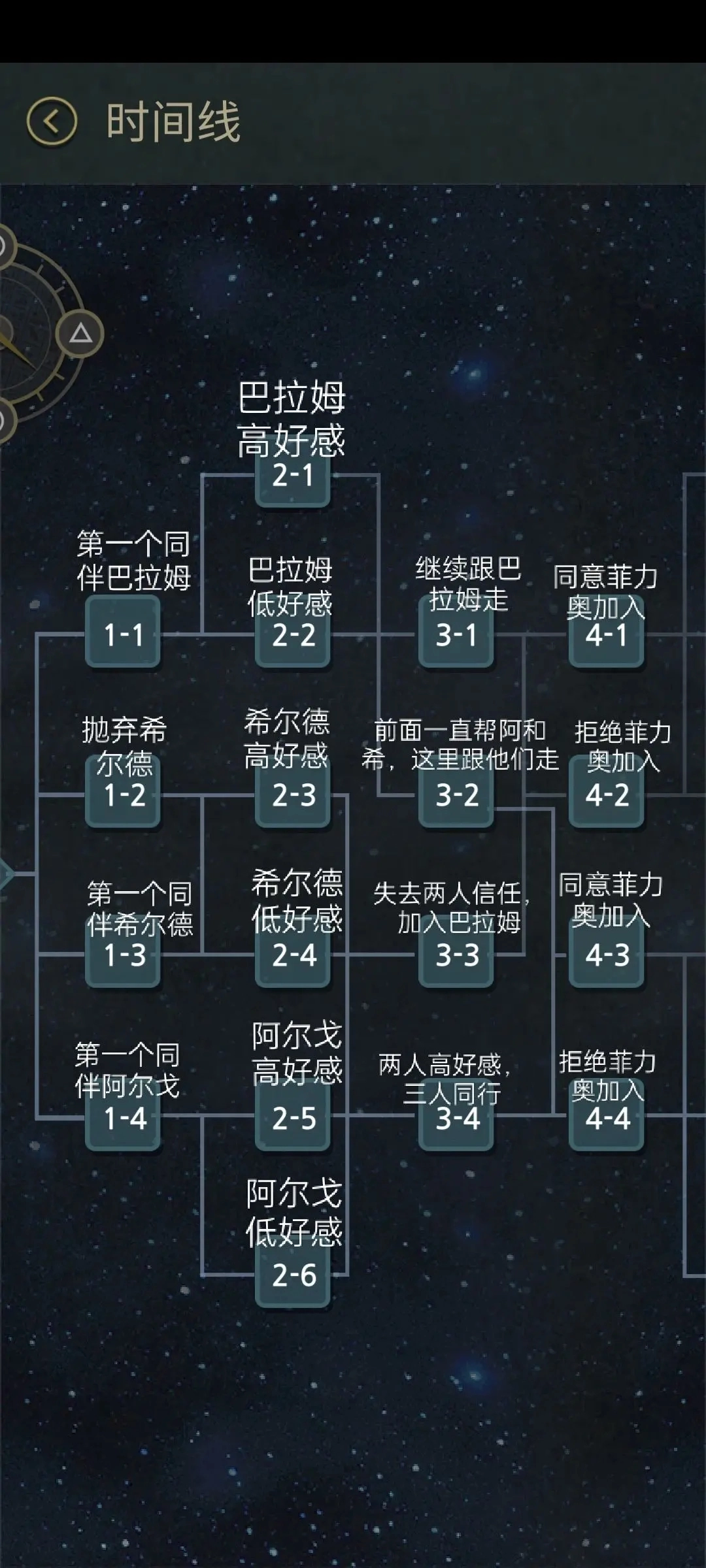 要达成结局,需要阿尔戈和希尔德的好感度达标,在最后时刻对菲力奥开枪。选择先遇到巴拉姆的路线,帮助阿尔戈和希尔德,无论是否选择跟随他们都可以;要是不跟随,在阿尔戈与巴拉姆发生冲突时,会和希尔德有一段额外的对话。最后只要开枪就能达成目标。