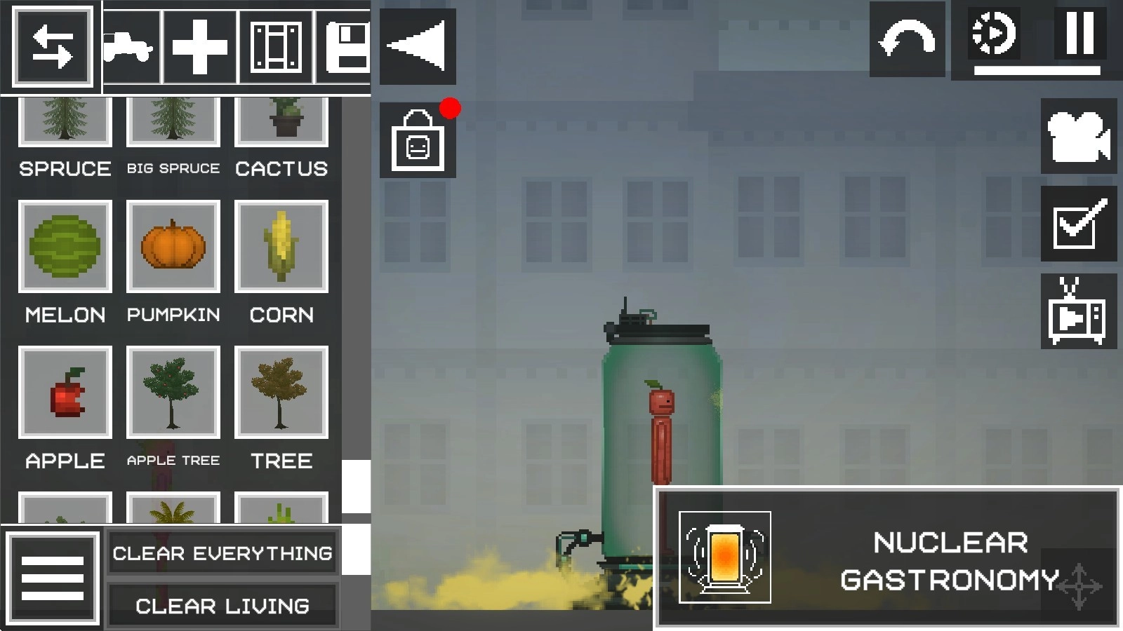 2、可以依据自身的想象力去构建场景,像摆放甜瓜人、丢弃武器、放置汽车之类的操作都可以进行。