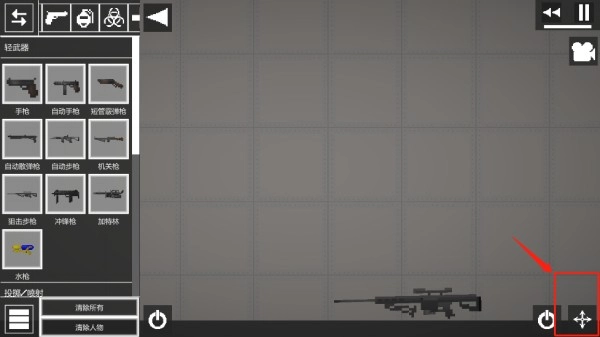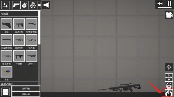 进入游戏地图后,左侧会呈现添加人物、武器、道具等多种选项。