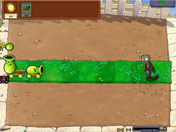 之后就可以点击豌豆来发射自己阻挡僵尸的入侵了。