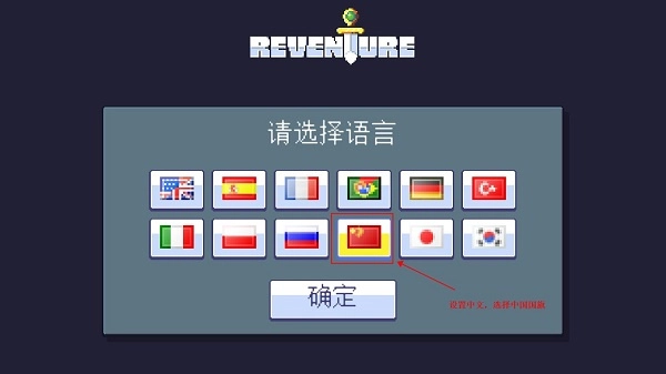 在本站完成安装后点击启动游戏,进入游戏界面时会弹出语言设置窗口,窗口中不同语言选项旁对应着各国国旗标识。