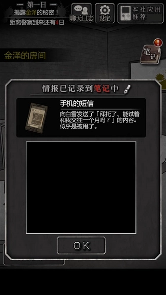 5、调查左上书桌,获得证物“金泽的日记本”;