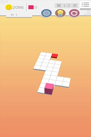 3、平台的四周环绕着无尽的虚空,小方块仅能朝上下左右四个方向滚动,无法进行斜向移动,一旦滚出平台边界便会致使游戏失败。
