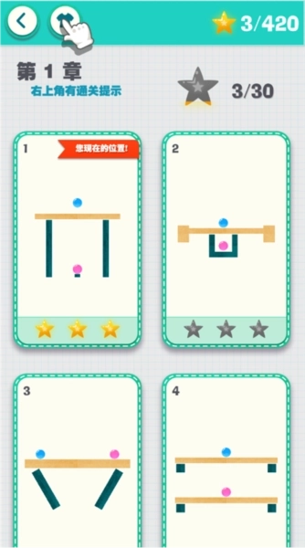 3、游戏以闯关玩法为核心,玩家需在各关卡内按指定要求完成挑战,系统会依据完成情况评定星级。随着关卡推进,难度将逐步提升,玩家通过持续挑战可解锁更多精彩关卡,在切割绳子、营救可爱球球的过程中,收获超棒的游戏体验。