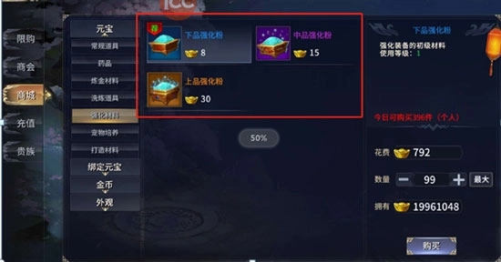 强化粉的获取途径包括:商城购买、摆摊购买以及每日参与蜃楼炼境玩法获取。