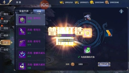 强化打造装备时,有一定几率产出带有特殊技能的装备,穿戴这类装备即可获得对应的特技效果(关于特技的具体说明将在下文呈现)。