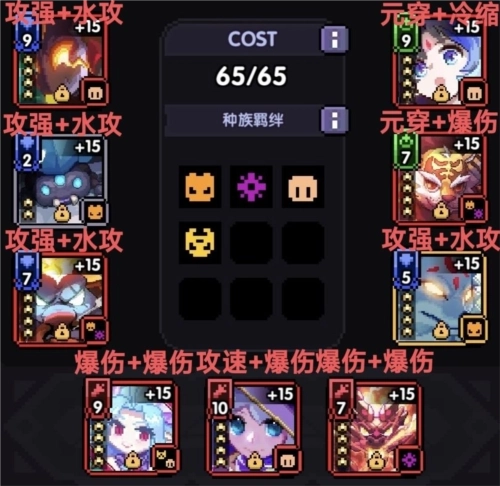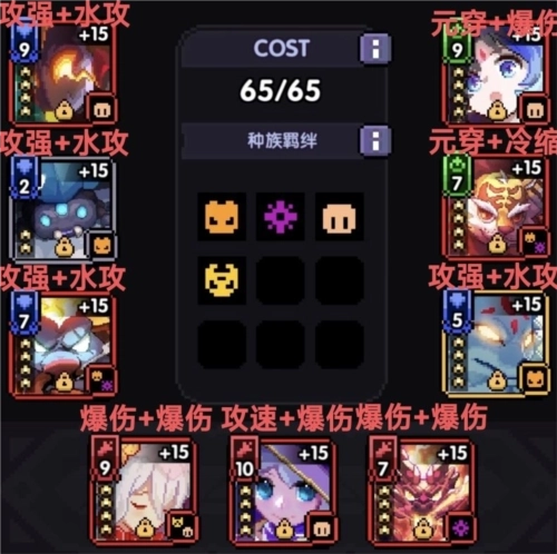 3、接下来我们来看一下,我们总共有9个位置,其中4个同种族的角色可以触发一个种族效果,而魔神种族只要一张就能激活该效果了。