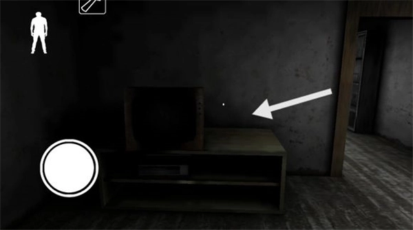 下楼梯后左边的地板上有一根黑线,从上面走过铃铛会响,需要注意。楼梯旁的柜子里可以躲,柜子对面有一个门,里面可能刷东西。柜子旁边有一个门通向地下室(由于画面较暗