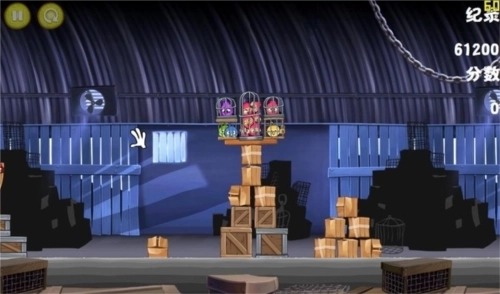 这一关比较麻烦。对于目标的要求比较精确。你需要让你的黄色小鸟瞄准。建筑物中间部位的方块空心木架,而且在射击的时候要确保摧毁第一个笼子。使用一个小鸟完成本任务即可三星