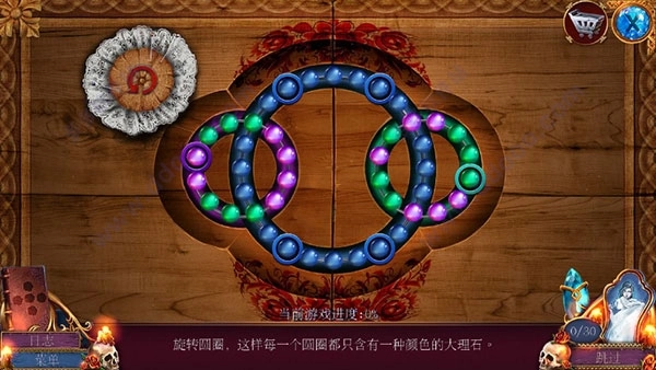 总结:玩法规则是先把小圈的位置调整妥当,再通过转动大圈来完成红绿玻璃珠的置换操作。