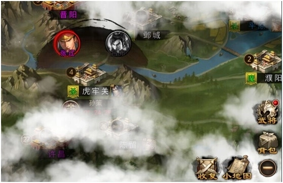 游戏地图里分布着60座核心城池,主线任务便是逐一收复它们。每座城池通常配备1到5名守城将领,每位将领都对应一道关卡。只有击败该城所有将领、闯过所有关卡,城池才会解锁并宣告收复;而那些还未被收复的城池,上方会始终笼罩着一层云雾。